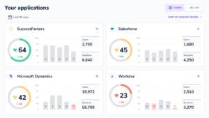 This is where Userlane’s HEART Analytics, part of Application Intelligence, come in. Look at user engagement rates, frequency of app usage and retention, and understand how well the app is adopted by users. With those insights, you can refine your software adoption approach to better serve your employees.